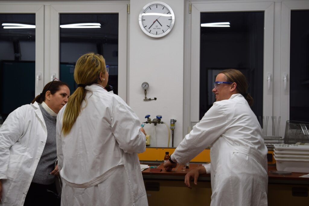 So führten sie zum Beispiel Experimente zur Herstellung von Goldnanopartikeln oder zur Generierung von modifizierten Oberflächen durch. Dabei lernten sie unsere Lernstationen zu Nano-Grundlagen kennen, die so auch die Schulklassen bei einem Besuchstag durchlaufen. Gleichzeitig erfuhren die Lehrkräfte mehr darüber, mit welchen Methoden und Verfahren sich Nanostrukturen und Funktionen untersuchen lassen oder wie sich mit Hilfe aktueller Forschungsergebnisse Oberflächen modifizieren lassen. Bei einem gemeinsamen Abschluss waren sich alle einig, dass sie bei ihrem Besuch viel Neues gelernt haben, das sie für ihren Unterricht gewinnbringend einsetzen können.