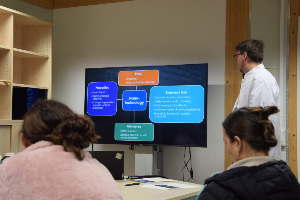 Am Dienstag, 25. November, besuchte uns eine Gruppe von Lehrkräften aus Israel in der Kieler Forschungswerkstatt. Nach einem kurzen Übersichts-Vortrag zu unseren thematischen Angeboten und unserer Arbeit, ging es für die Besucherinnen und Besucher ins Labor. Gemeinsam mit Frank Thoms, Leitung des nano:labors, entdeckten sie bei der praktischen Arbeit verschiedene Bereiche aus dem Feld der Nanowissenschaften.