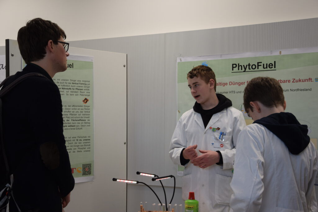 Ebenfalls acht Projekte starteten bei Jugend forscht. Im Fachbereich Biologie ging der Landessieg an gleich zwei Projekte. Maxima-Soraya Svensson (18), Noah Mextorf (18) und Alissa Eileen Schüler (18) von der Hermann-Tast-Schule und der Berufsschule Husum/Schülerforschungszentrum Nordfriesland fahren mit ihrem Projekt „Mythos Zwiebel?“ im Mai zum Bundeswettbewerb nach Herzogenaurach. Und auch Paul Brock (16) vom Schülerforschungszentrum Kieler Forschungswerkstatt ist als Landessieger mit seinem Projekt „Schallgesteuerte Stromata: Ein innovativer Ansatz für effizientere Landwirtschaft“ beim Bundeswettbewerb dabei.