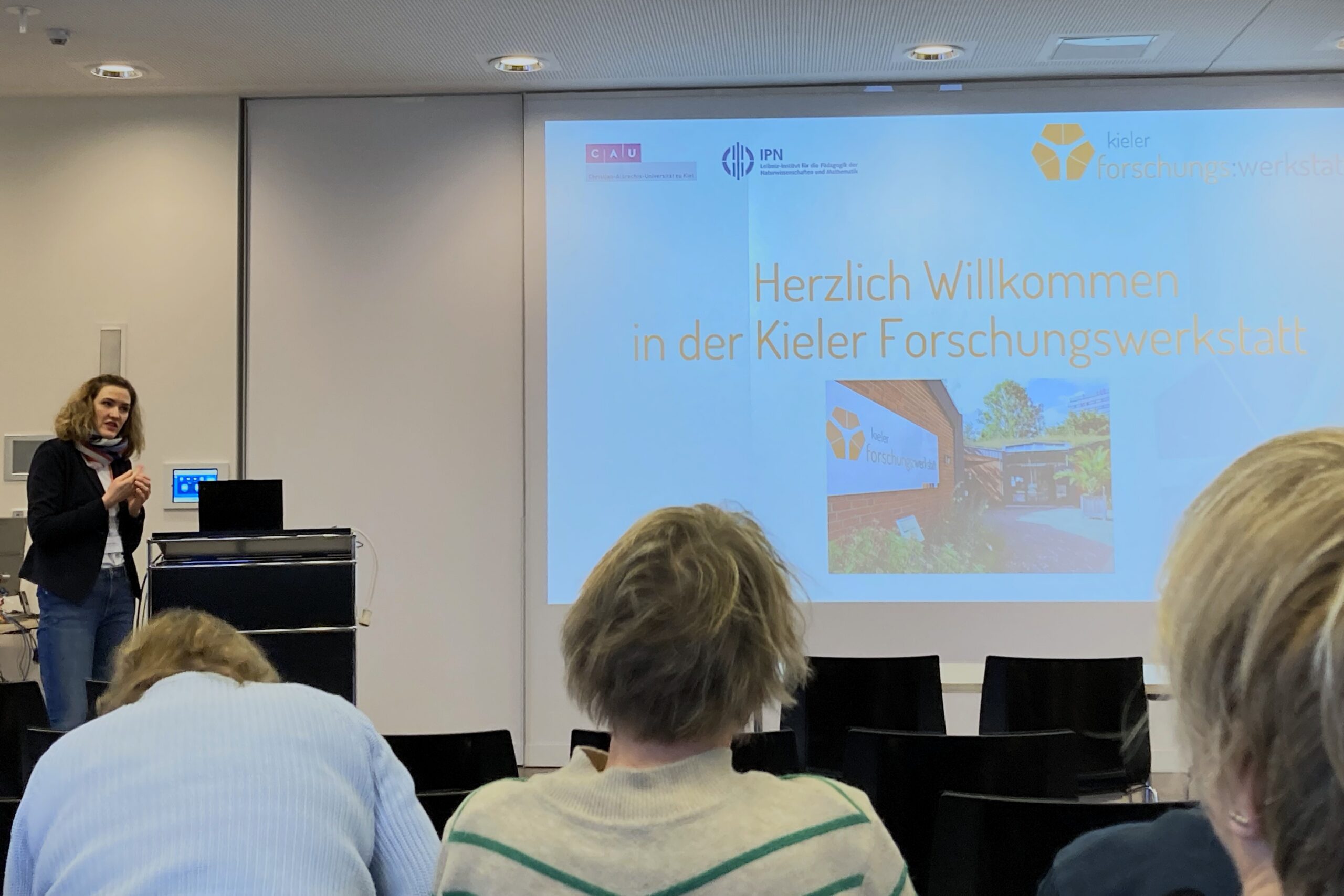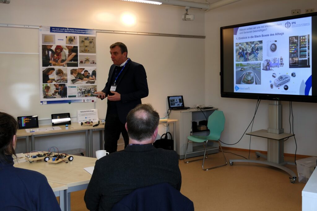 Am 2. Februar empfingen wir Lehrkräfte der Gemeinschaftsschule Kronshagen zu ihrem Schulentwicklungstag in der Kieler Forschungswerkstatt. Nach einer kurzen Begrüßung begann der Tag mit einem thematischen Einführungsvortrag zum außerschulischen Lernen sowie einer schnellen Sicherheitsunterweisung. Anschließend startete die Workshopphase. Die Teilnehmenden hatten hier die Möglichkeit, in Kleingruppen jeweils drei verschiedene Angebote kennenzulernen und einzelne Lernstationen auch selbst auszuprobieren. Dabei standen nicht nur naturwissenschaftliche Themen im Fokus, sondern auch geistes- und gesellschaftswissenschaftliche. Zudem erfuhren sie in den Workshops, welche Anknüpfungspunkte zum Unterricht vorhanden sind und welche Weiterentwicklungsmöglichkeiten es auch über den Unterricht hinaus gibt.
