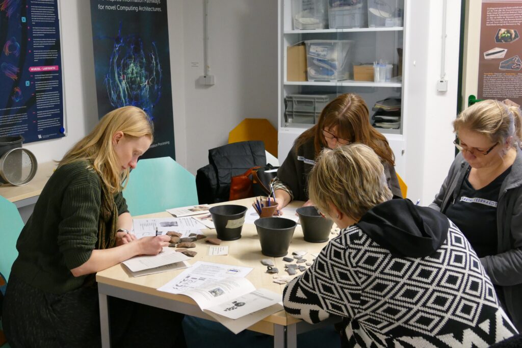 Im ersten Workshopblock gab zum Beispiel das Team vom geo:labor einen Einblick in das Programm „In 80 Tagen um die Welt“ bei dem in den Gewächshäusern im Botanischen Garten die Klimazonen der Erde bereist werden. Außerdem boten in diesem ersten Block das sprach:werk, die nawi:werft und das food:labor Workshops zu ihren Angeboten an. Nach einer kurzen Pause ging es direkt mit dem zweiten Workshopblock weiter. Hier erfuhren die Lehrkräfte mehr über das ozean:labor, das kunst:werk, das nano:labor und das archäo:labor. Bei der gemeinsamen Mittagspause sammelten alle neue Energie für den abschließenden Workshopblock. Neu dabei waren jetzt das werte:werk und das china:werk, außerdem noch einmal die nawi:werft und das food:labor.